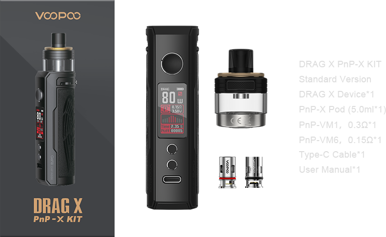 El producto de nueva generación KIT VOOPOO DRAG X PNP-X 80W no solo continúa con la última experiencia sensorial de la generación anterior, sino que también se derivan cinco nuevas apariciones de temas de Caballero.Cápsula PnP-X mejorada con materiales metálicos y