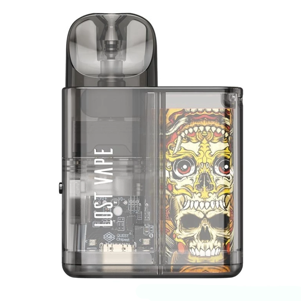 POD LOST VAPE QUEST URSA BABY , con un diseño de fachada transparente a la moda, para un estilo de vapeo MTL. La transparencia permite ver todas las partes internas del kit y también ver los LED que indicarán el nivel de carga y de potencia.
