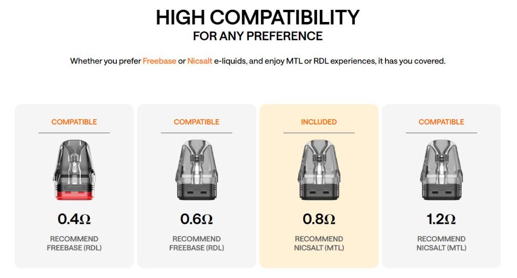 El Xlim Go es compatible con todos los pods de la gama Xlim, permitiendo disfrutar de una experiencia MTL o RDL con Freebase o Nic Salts.