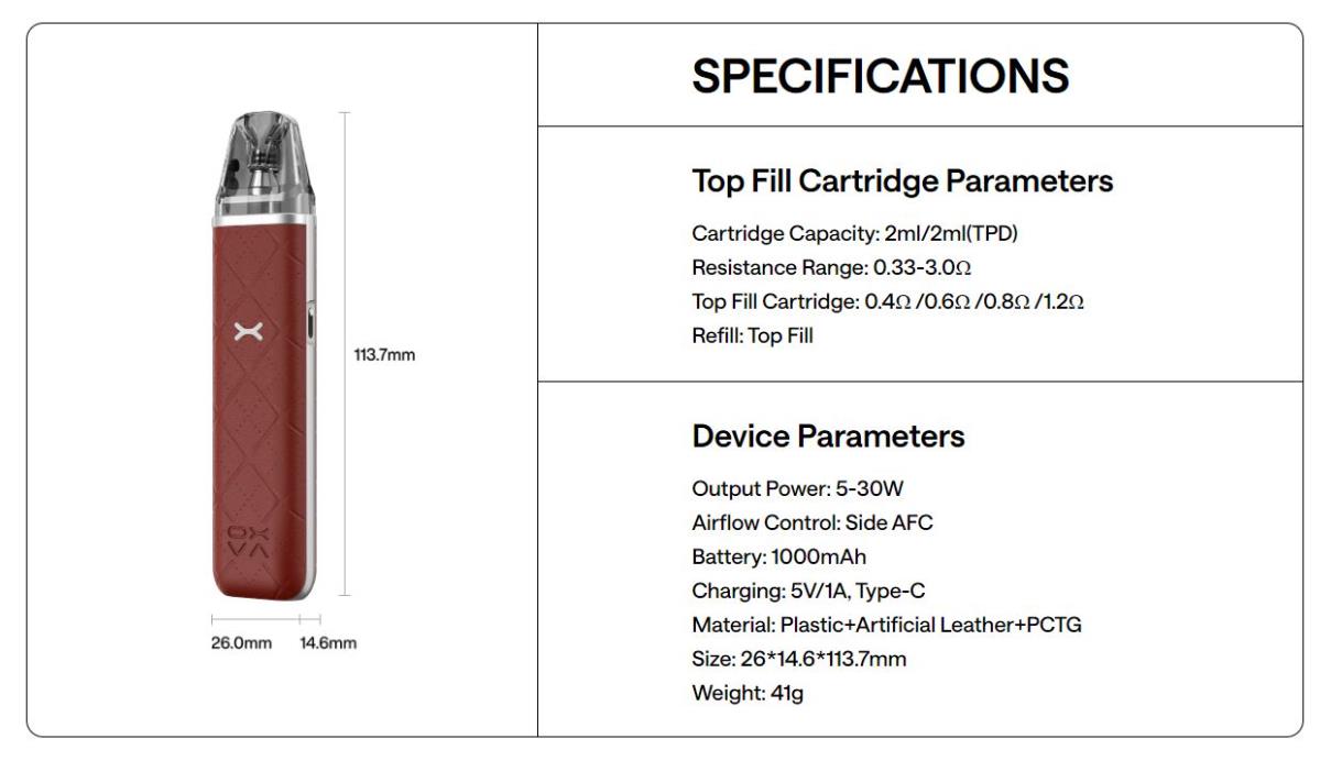 El kit Xlim Go de Oxva destaca por su revestimiento en cuero fino, que le aporta una textura cómoda y un aspecto muy elegante. Ofrece hasta 30W de potencia máxima de salida gracias a una batería interna de 1000mah, y es compatible con todos los pods de la gama Xlim.